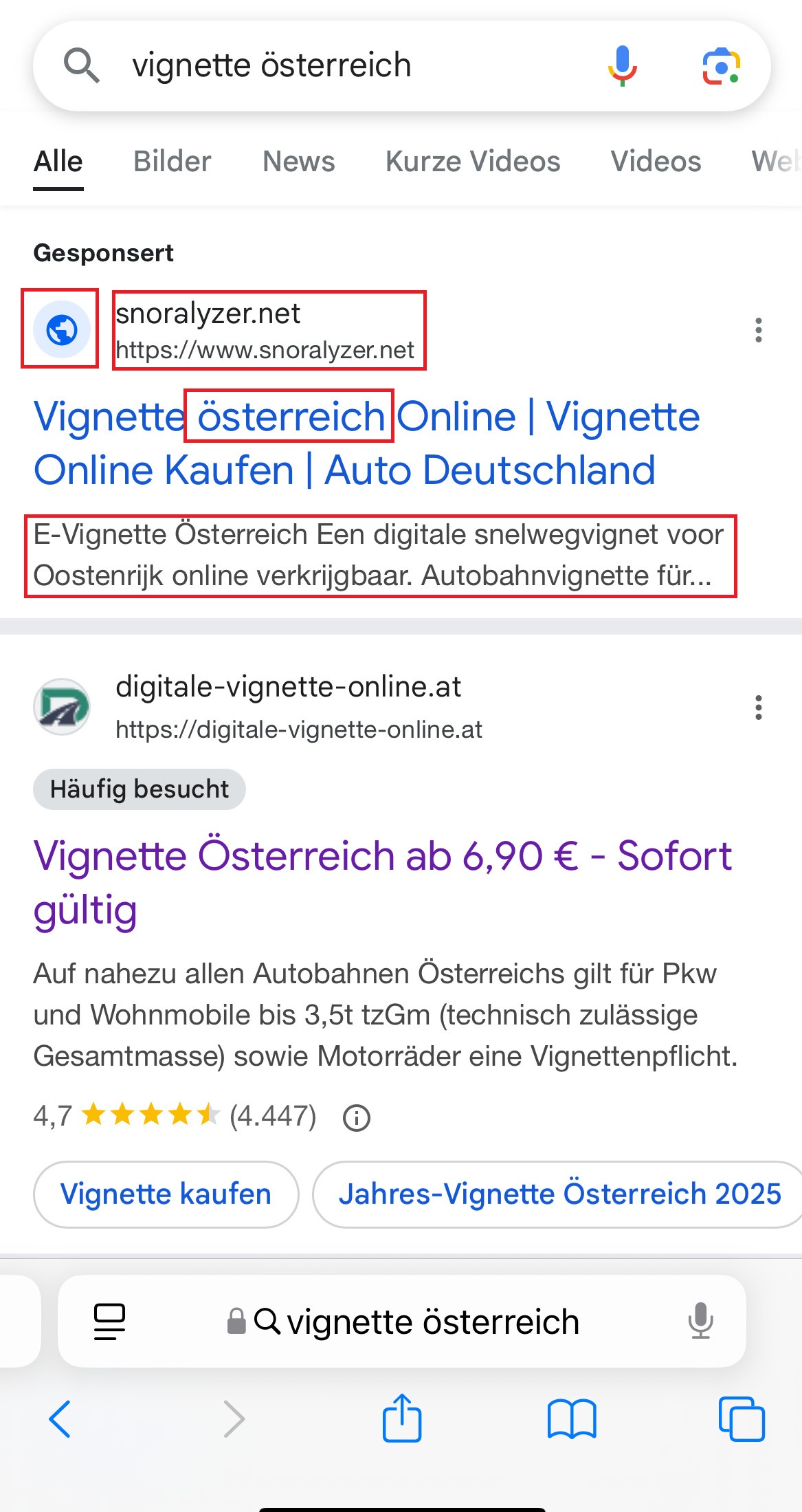 - These websites are advertised for popular search queries such as "Austria vignette".